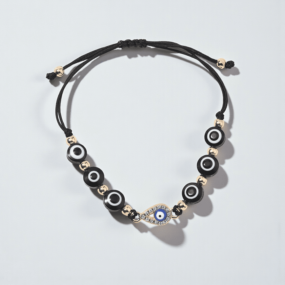 This Black Adjustable Evil Eye Bracelet is designed to offer spiritual protection by deflecting jealousy, envy, and unwanted energy.