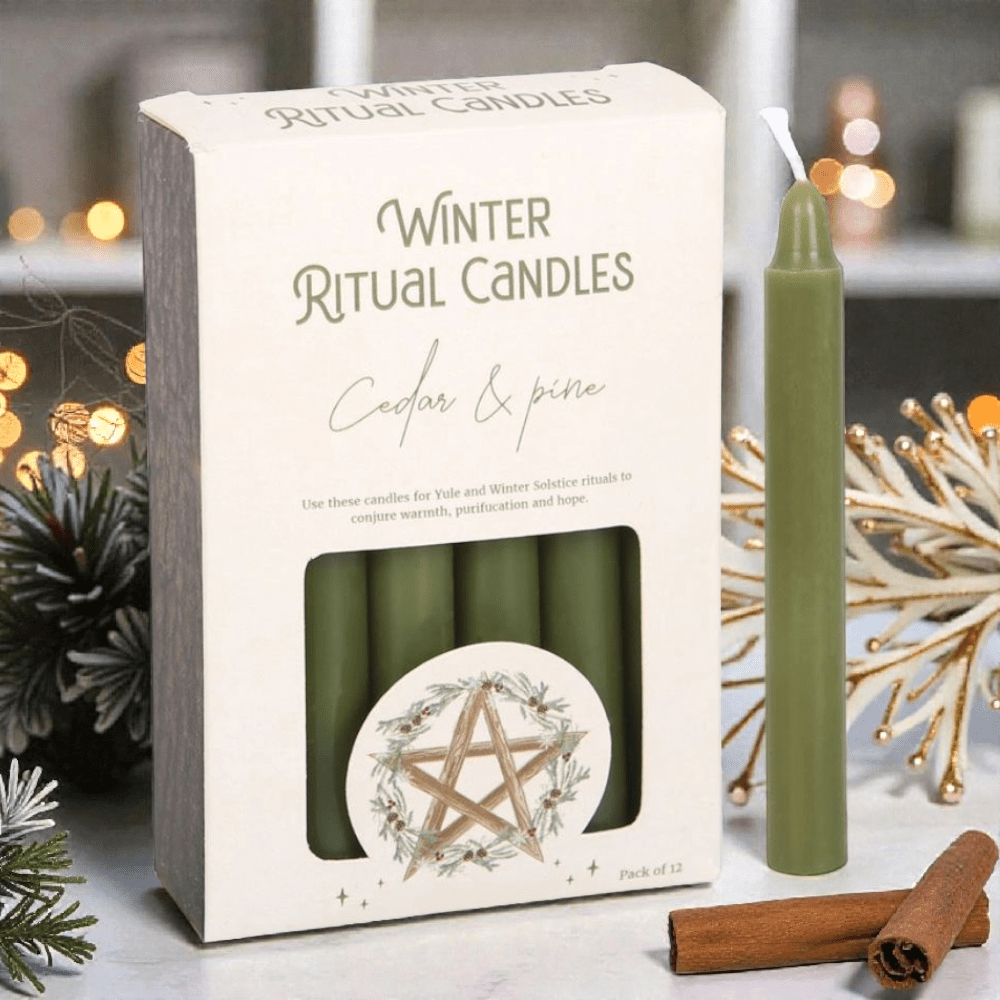 Bring a sense of warmth, renewal, and quiet transformation into your winter rituals with our Winter Ritual Spell Candles. Each set includes twelve cedar and pine–scented candles that feel like a soft invitation to slow down, reconnect, and honour the natural shift into the colder months. Whether you're celebrating Yule, practicing Winter Solstice rituals, or simply craving a grounding moment of calm after a long day, these candles help create a sacred atmosphere rooted in intention and seasonal magic.