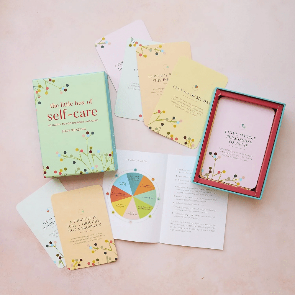 The Little Box of Self Care is your daily companion for restoring, replenishing, and healing. This beautifully designed 50-card deck by Suzy Reading provides practical and inspiring self-care practices to help you manage stress and nourish your well-being. Central to self-care is the understanding that taking care of yourself is not selfish, but essential for your health and happiness. Whether you have a busy schedule or need a moment of mindfulness, this deck offers a variety of practices to suit your needs.