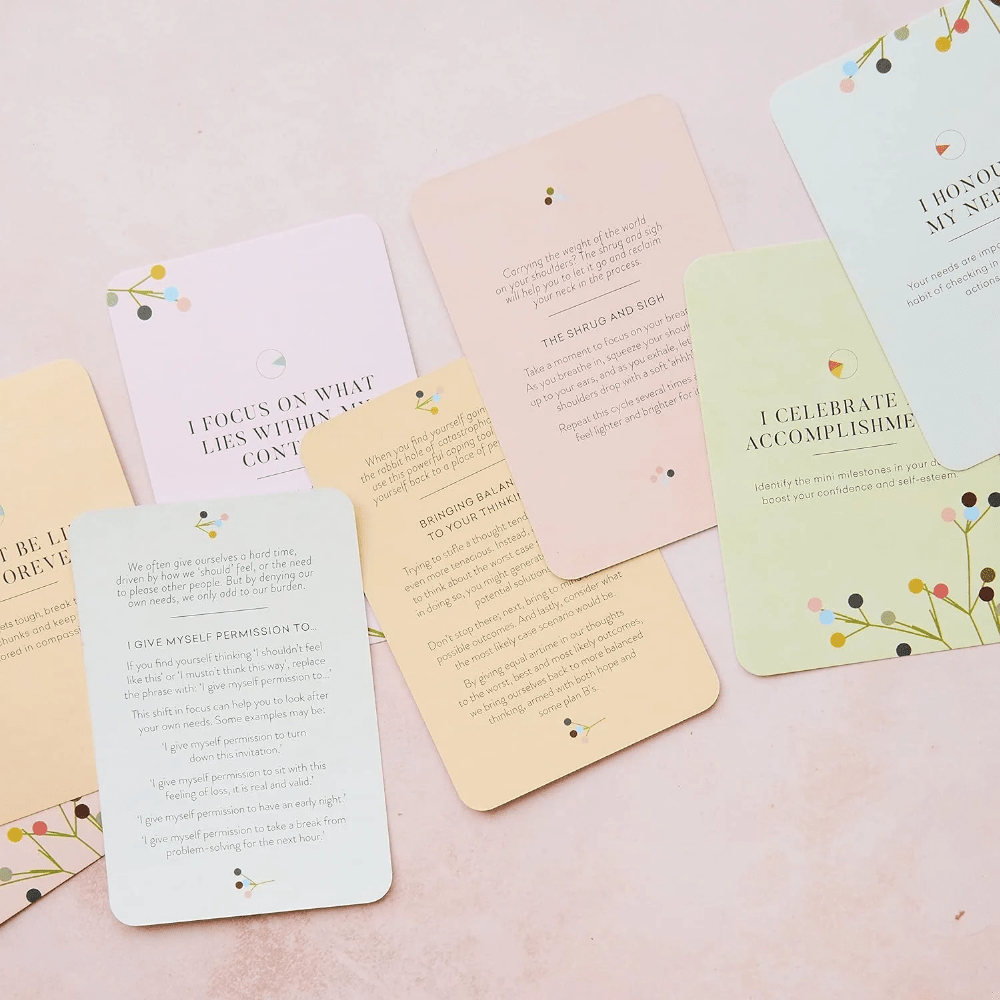 On-the-Go: Keep a card or two with you to remind yourself to practice self-care throughout the day.