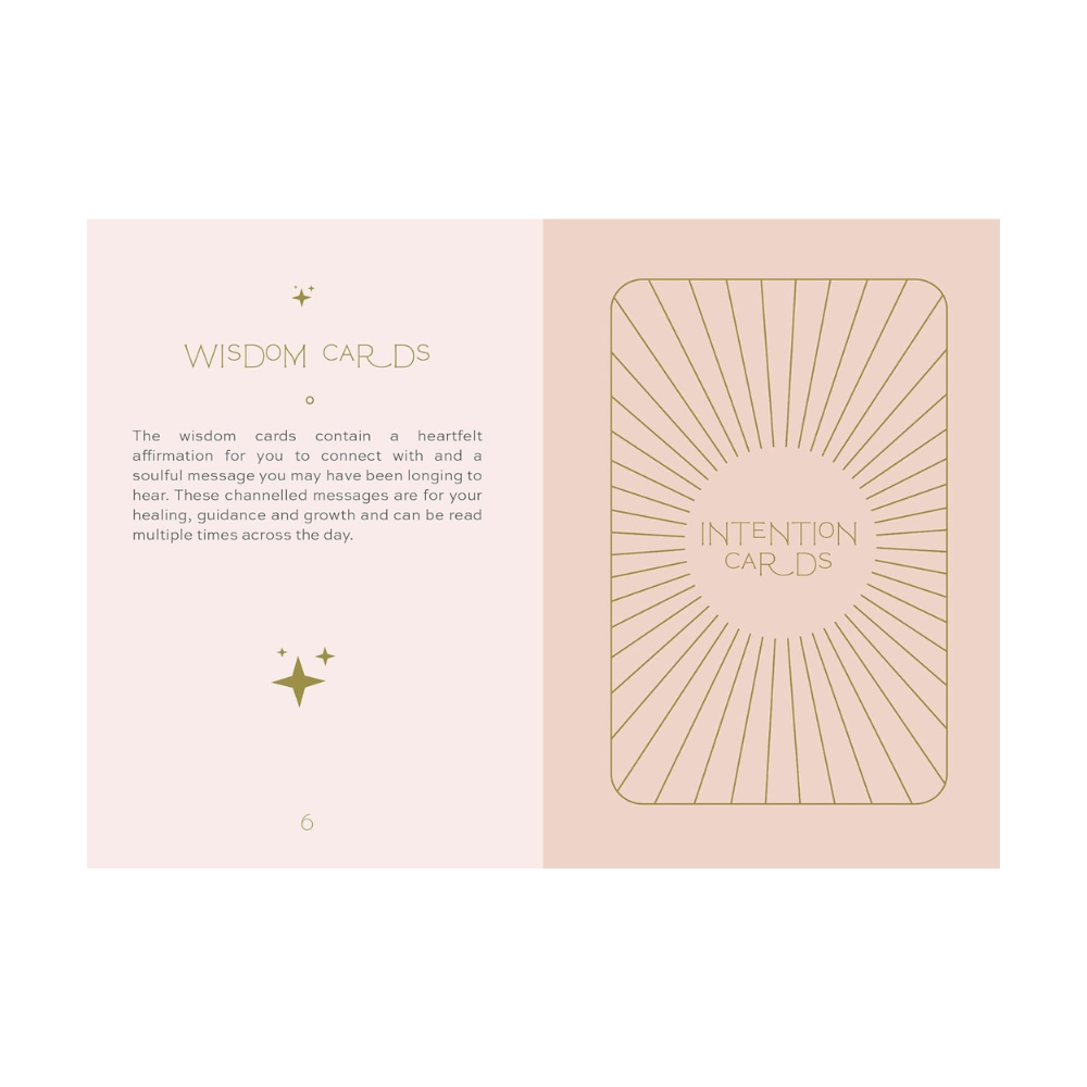 These cards have been created to align with two suits: the Intention Cards provide you with an intention and a daily practice for the day. These include a message, mantra and ritual for you to work with. The Wisdom Cards contain a guiding affirmation for you to align with your soul's inner wisdom. Use these cards daily for guidance and intention.