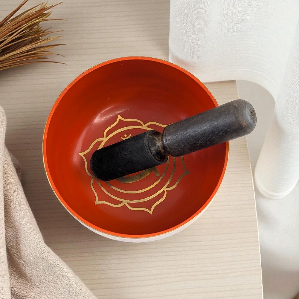 This singing bowl supports the Sacral Chakra by offering a flowing, rhythmic vibration that helps loosen emotional tension and reconnect you to your feelings. Its tone encourages you to breathe into your belly, soften your hips, and gently invite more warmth, pleasure, and movement back into your life.