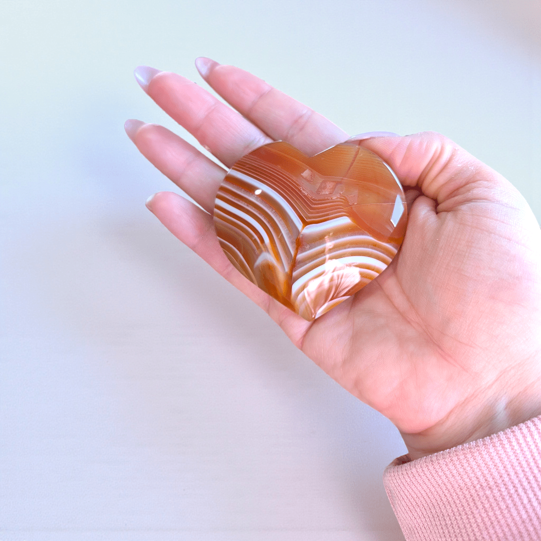 The Orange Carnelian Crystal Heart is a stone of passion, confidence, and motivation. It carries a warm energy that helps you feel empowered and ready to take action.