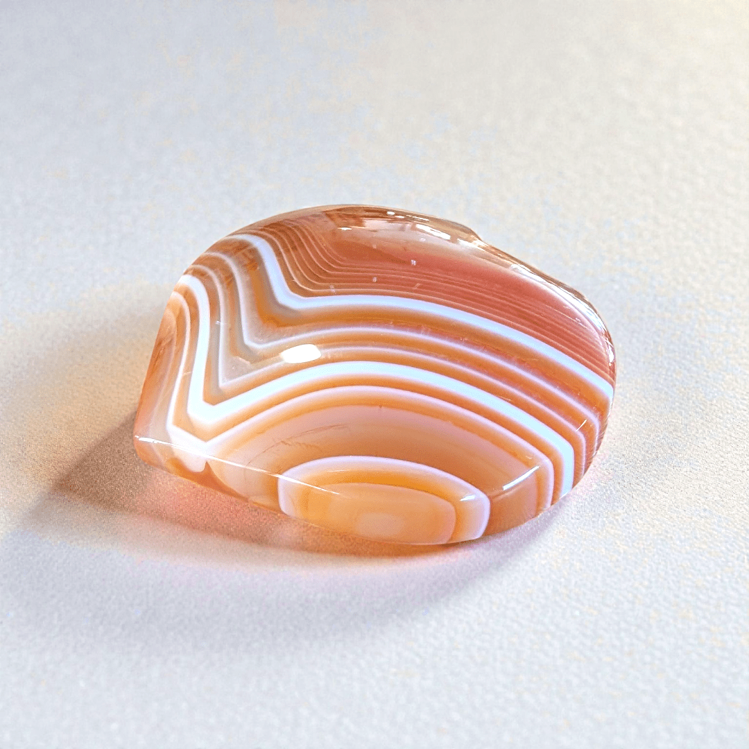 Carnelian is a variety of Chalcedony known for its deep orange to pale orange hues. It is a stone of courage, helping you break through fear and self-doubt.
