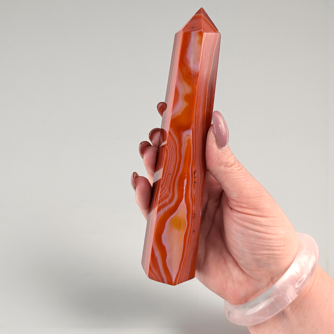 Carnelian Crystal Tower is for self-trust, confidence, and decisive action. This sacral-focused piece helps you stop second-guessing, start moving, and follow through on what matters—perfect for creators, leaders, and anyone reclaiming their personal power.