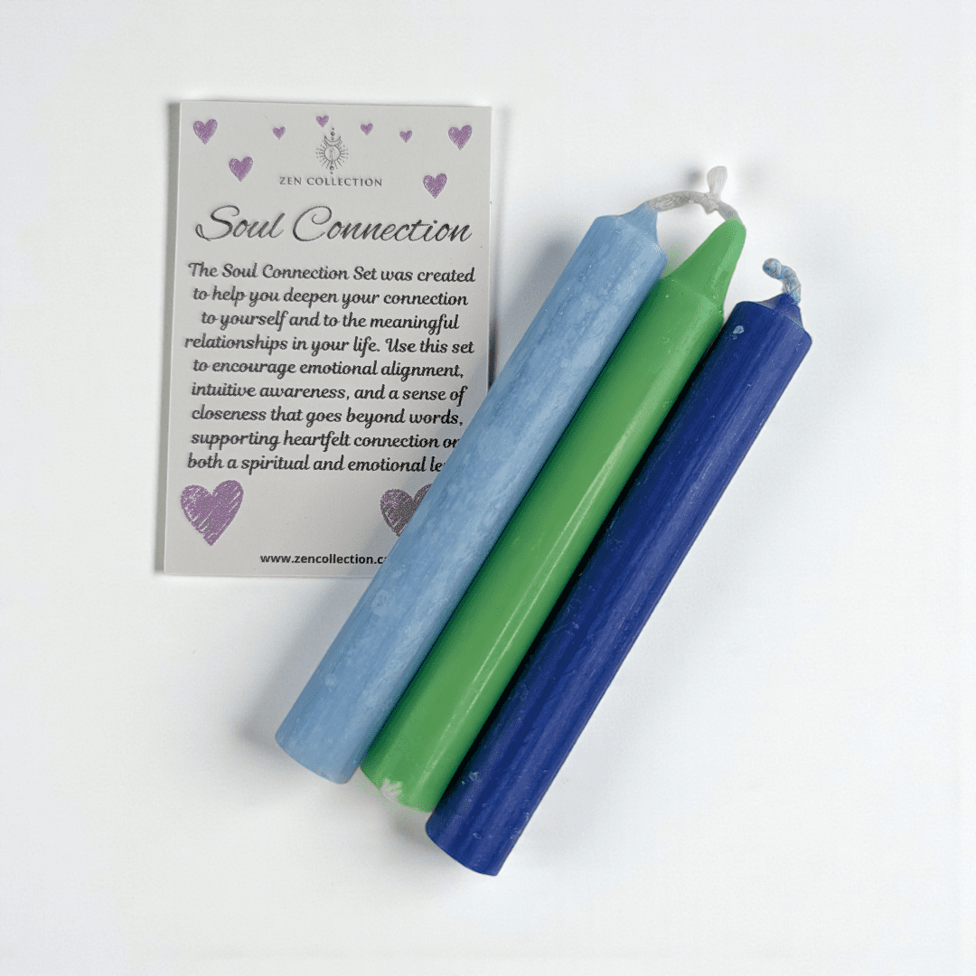 The Soul Connection Candle Set was created for moments when you want to reconnect — with yourself, with another, or with the deeper emotional bonds that matter most. These ritual candles are intentionally chosen to support love, communication, and emotional harmony, making them ideal for intention setting, reflection, and heart-centered spiritual work.