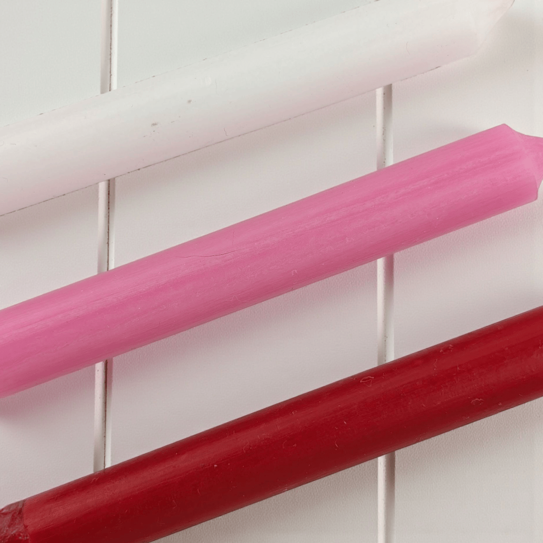 Customers will receive one of each colour shown (white, pink, red). Candle holders are sold separately. Colour tones may vary slightly in person due to screen settings.