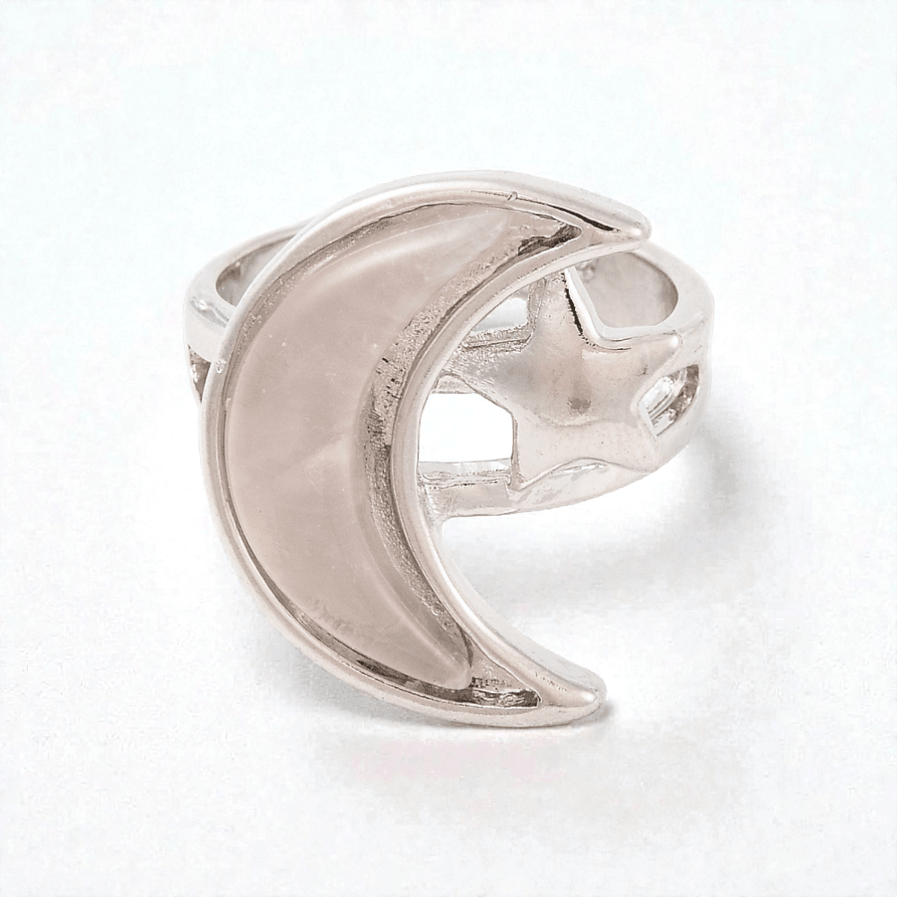 This Rose Quartz Star & Moon Adjustable Ring is worn for softening self-criticism and rebuilding emotional safety from the inside out. It’s for the person who shows up for everyone else, but struggles to give themselves the same gentleness.