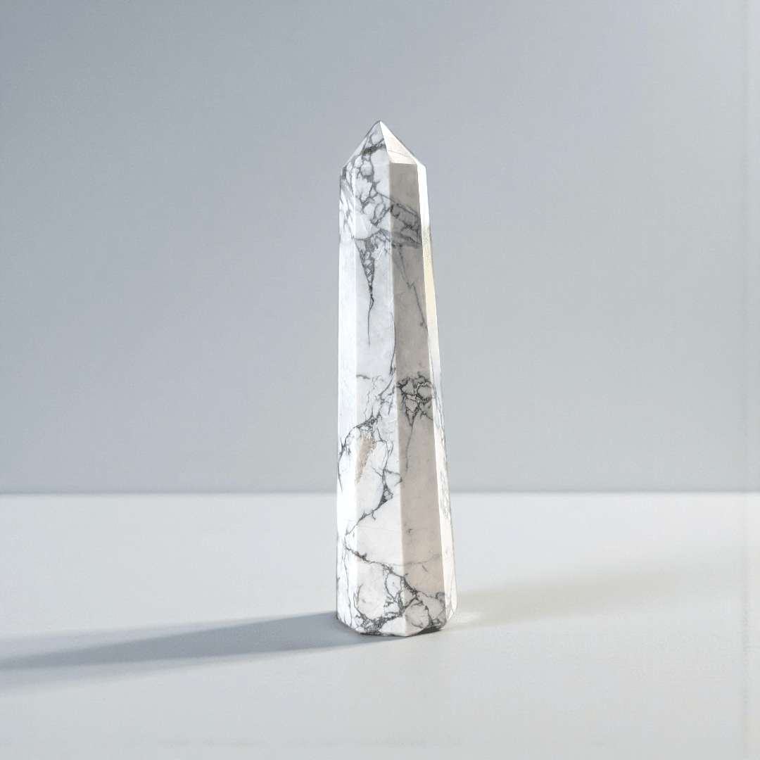 You will receive the exact Howlite Crystal Tower shown. Natural veining, surface textures, and color variations are expected and are a testament to the stone’s authenticity. Color may appear slightly different depending on screen settings.