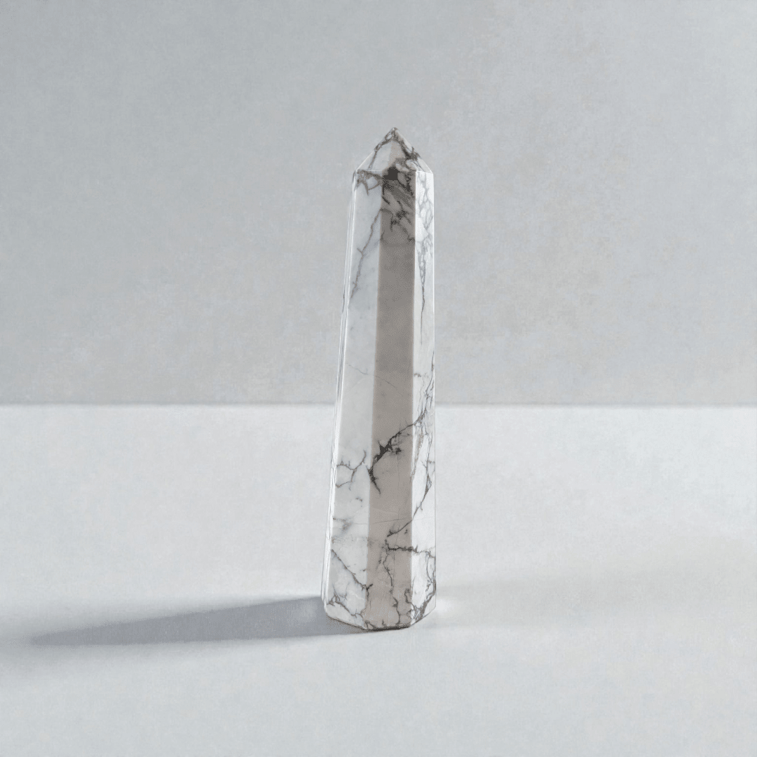 The Howlite Crystal Tower is best known for supporting emotional regulation, patience, and calming reactive thoughts. This stone is especially helpful for those who feel easily overwhelmed, mentally overstimulated, or quick to react under stress. Howlite works by slowing the mind and helping you respond thoughtfully instead of emotionally.