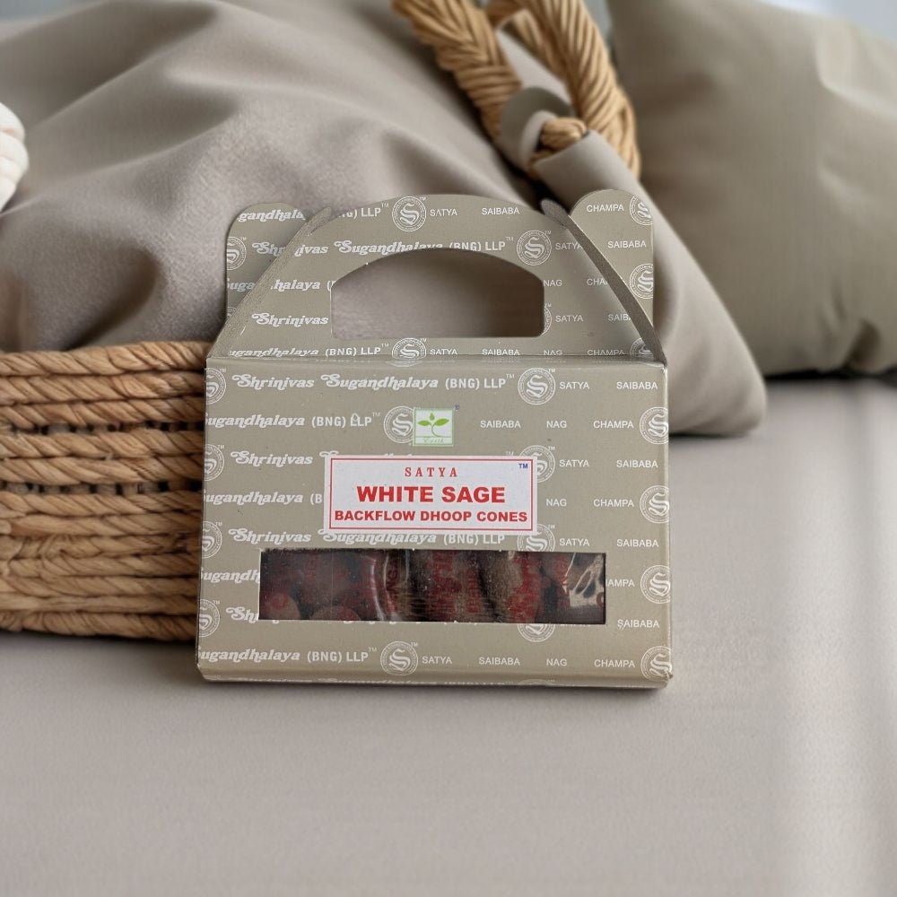 Purge stagnant energy and invite calm with Satya White Sage Backflow Dhoop Cones. These natural cones are infused for a rich, clean aroma—without artificial smoke enhancers. Designed for backflow burners, the smoke gently cascades downward, creating a soothing, meditative effect while you cleanse your space and settle your mind.