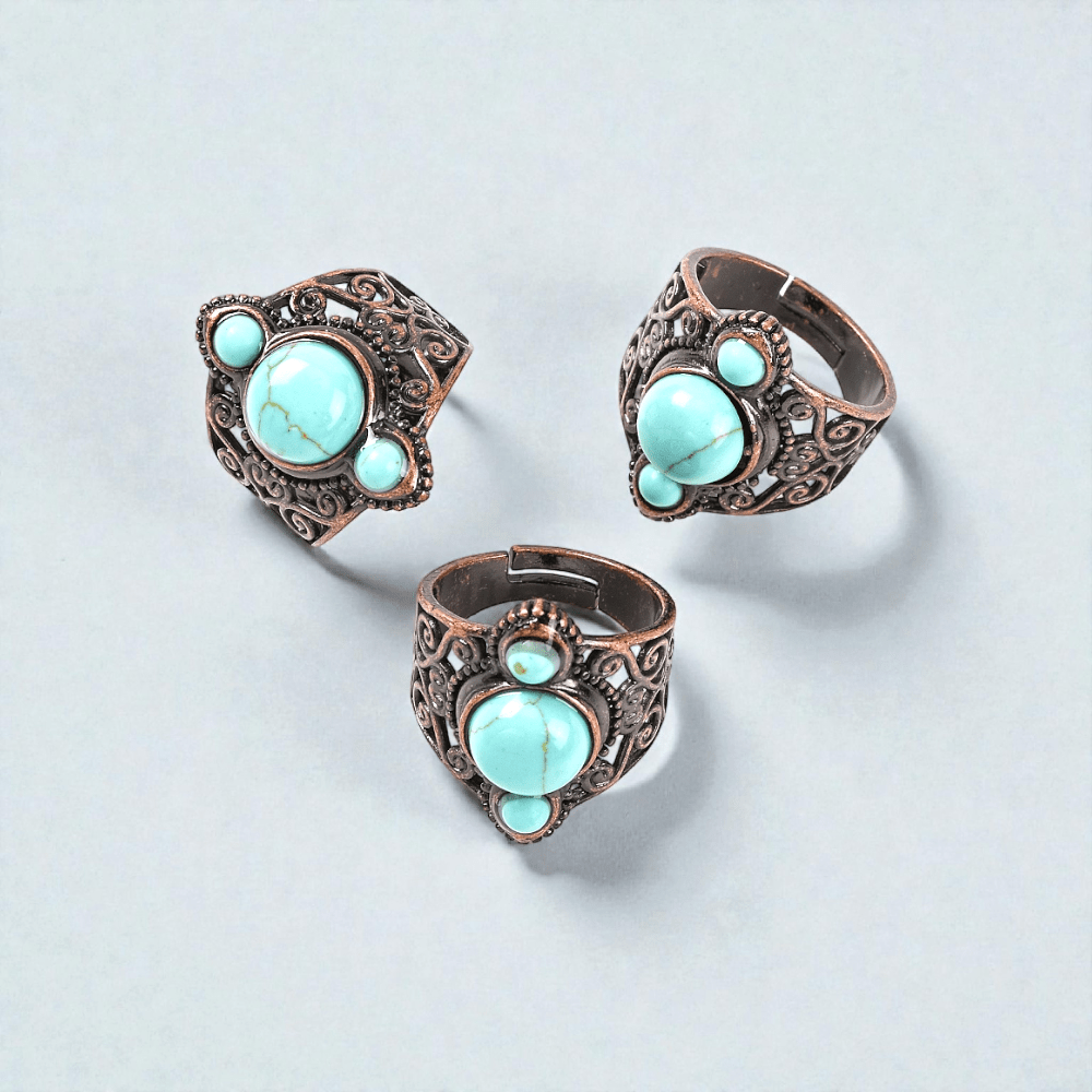 This retro turquoise-style ring is a visibility piece. Not in a “look at me” way—in a “I’m done shrinking” way. It’s for speaking up, taking up space, and showing up consistently, especially when you’re tired of second-guessing yourself. This ring uses synthetic turquoise, making it a great option for the look and vibe of turquoise without positioning it as a rare natural stone.