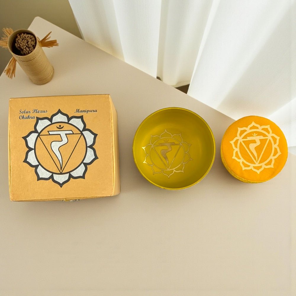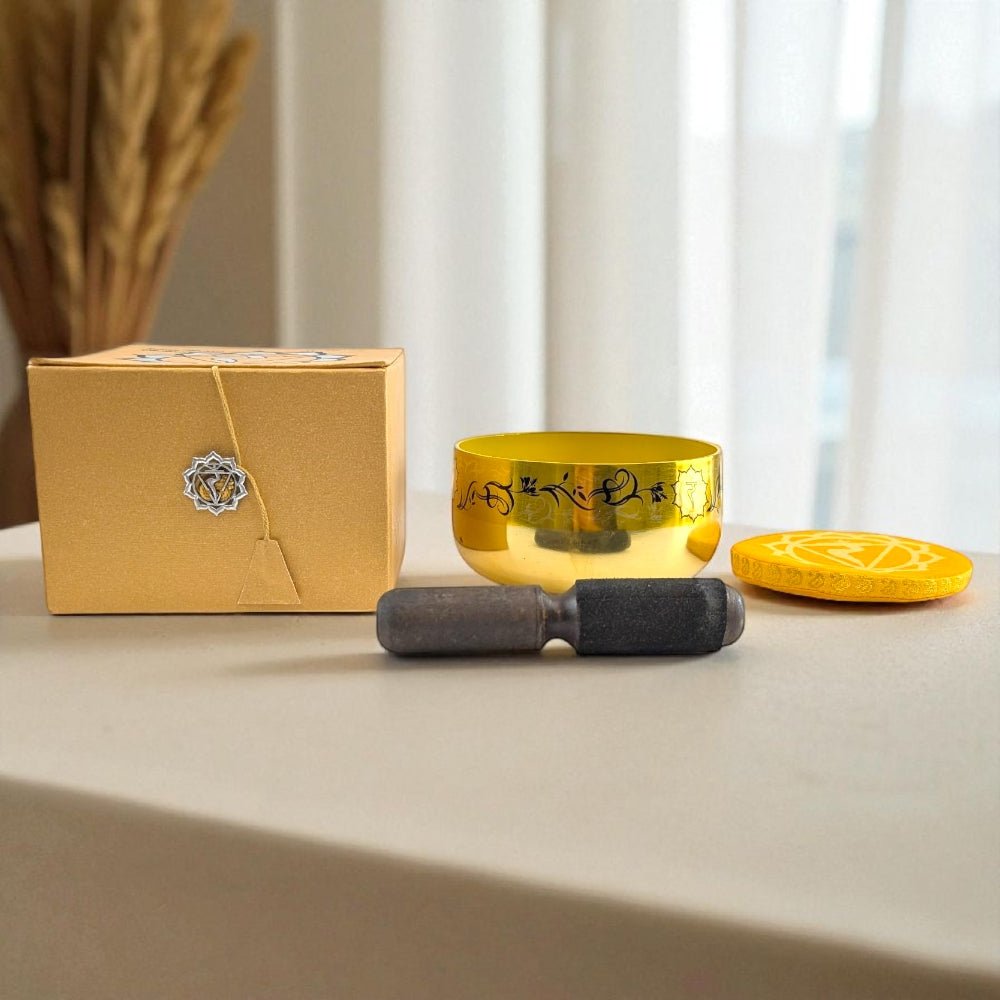 Bring steady confidence and inner strength into your life with this Solar Plexus Chakra Singing Bowl — a piece created to support self-worth, personal power, and taking action without feeling overwhelmed. A Solar Plexus bowl is traditionally used to ease tension in the stomach area, calm anxious energy, and help you feel more solid in your decisions. When played, its warm vibration encourages the body to relax, the breath to steady, and the Solar Plexus Chakra to feel more grounded, balanced, and empowered. This bowl is ideal for anyone who struggles with self-doubt, people-pleasing, or feeling stuck when it is time to move forward.