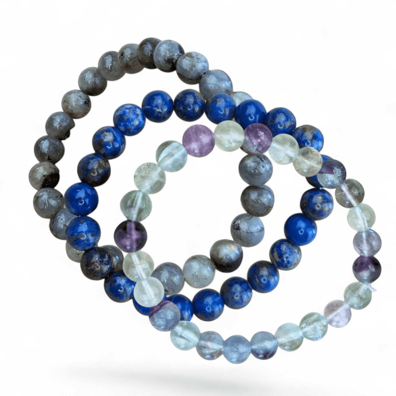 • Includes: Lapis Lazuli, Labradorite, and Fluorite crystal bracelets