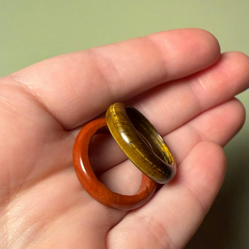 I ordered two crystal rings and I love them both! It was a lovely surprise to have the crystals chosen for me, I received tigers eye and red jasper and they are beautiful. I made a small request at the time of my order and the shop had no issues accommodating me, just another reason I love buying from small businesses!