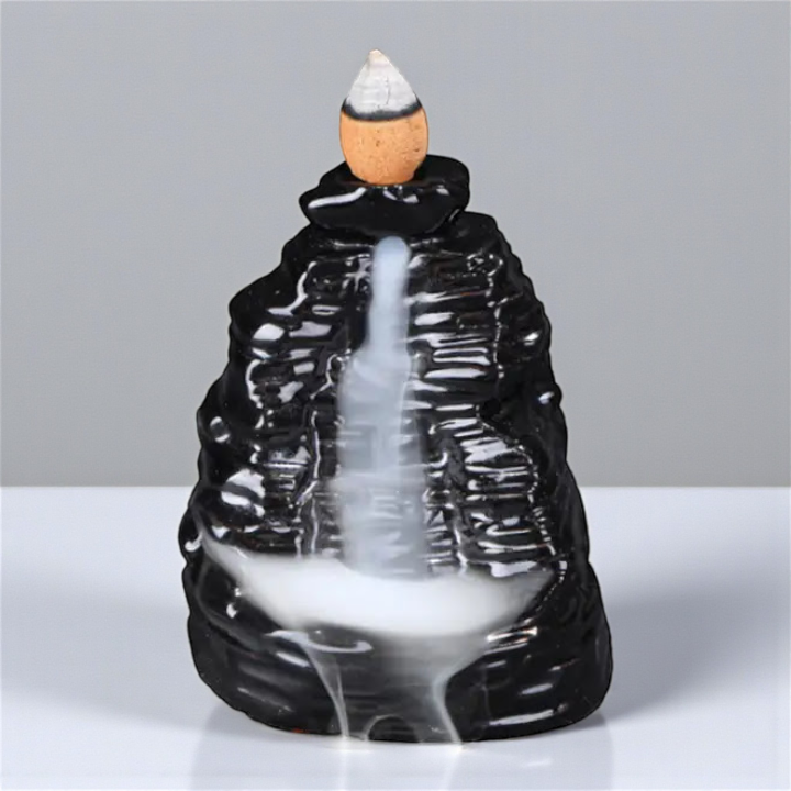 The Black Ceramic Backflow Burner creates a downward smoke cascade that settles into the base like mist dropping into stone. The glossy black finish keeps it clean, minimal, and easy to style in any altar or meditation space.