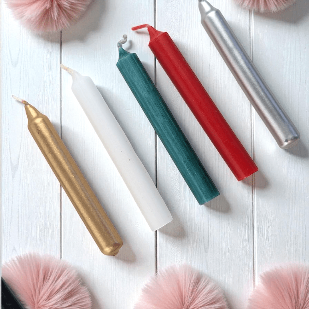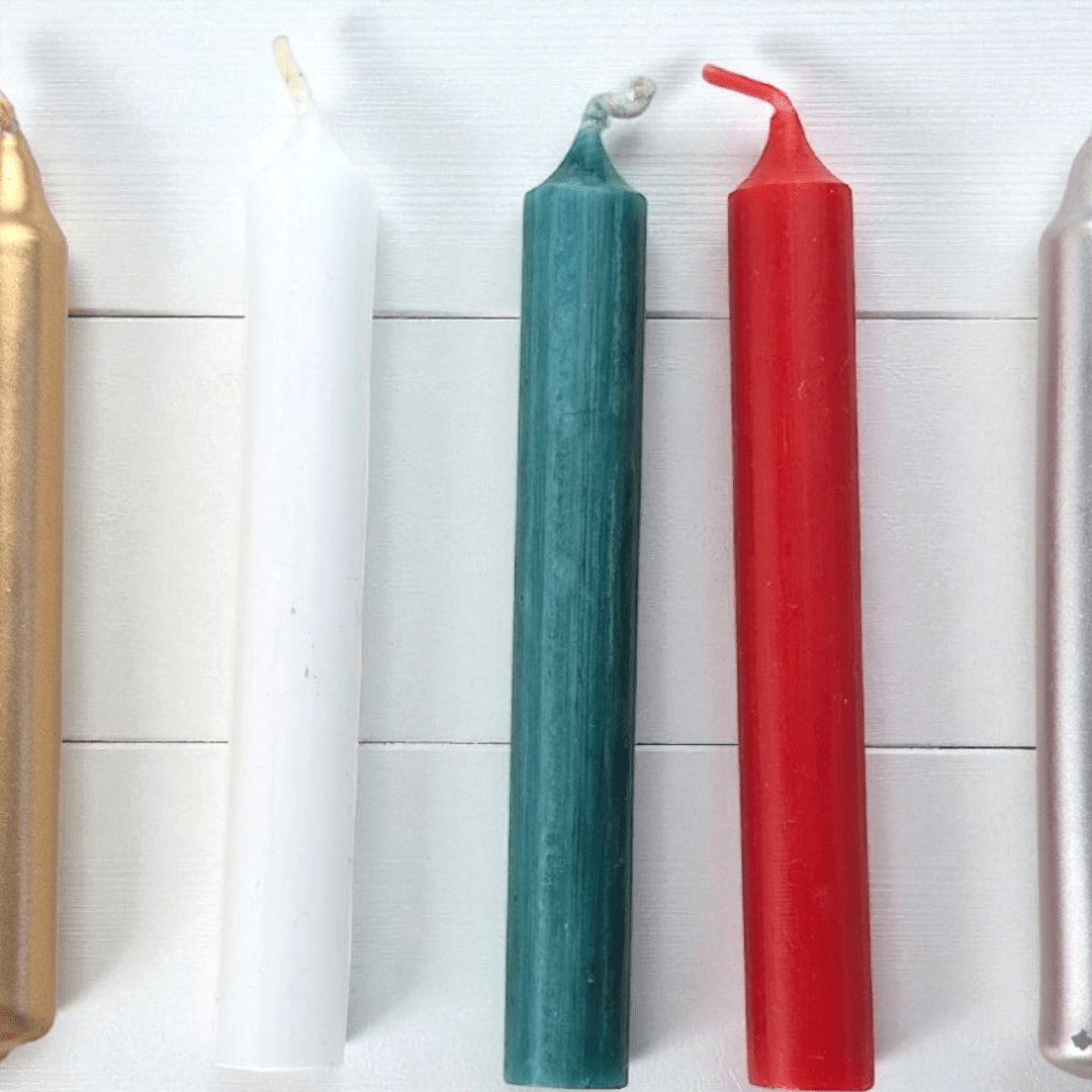 Customers will receive one of each colour shown. Two options are available: candles only, or candles with a white chime candle holder. Colour tones may vary slightly in person due to screen settings.