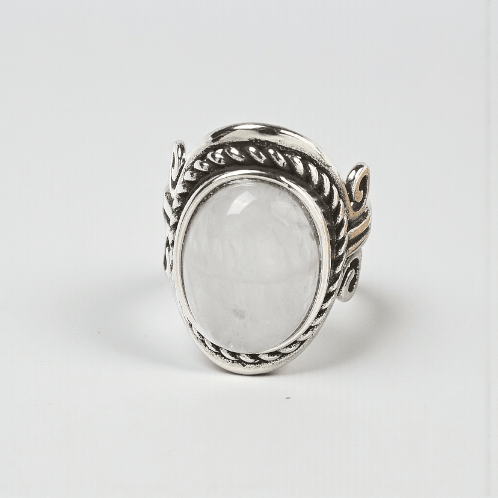 This ring features a natural Clear Quartz stone set in an adjustable band. Each stone is unique and will display its own natural inclusions, surface textures, and internal markings. You will not receive the exact ring shown, but one intuitively selected piece. These natural characteristics are part of what make Clear Quartz genuine and authentic.