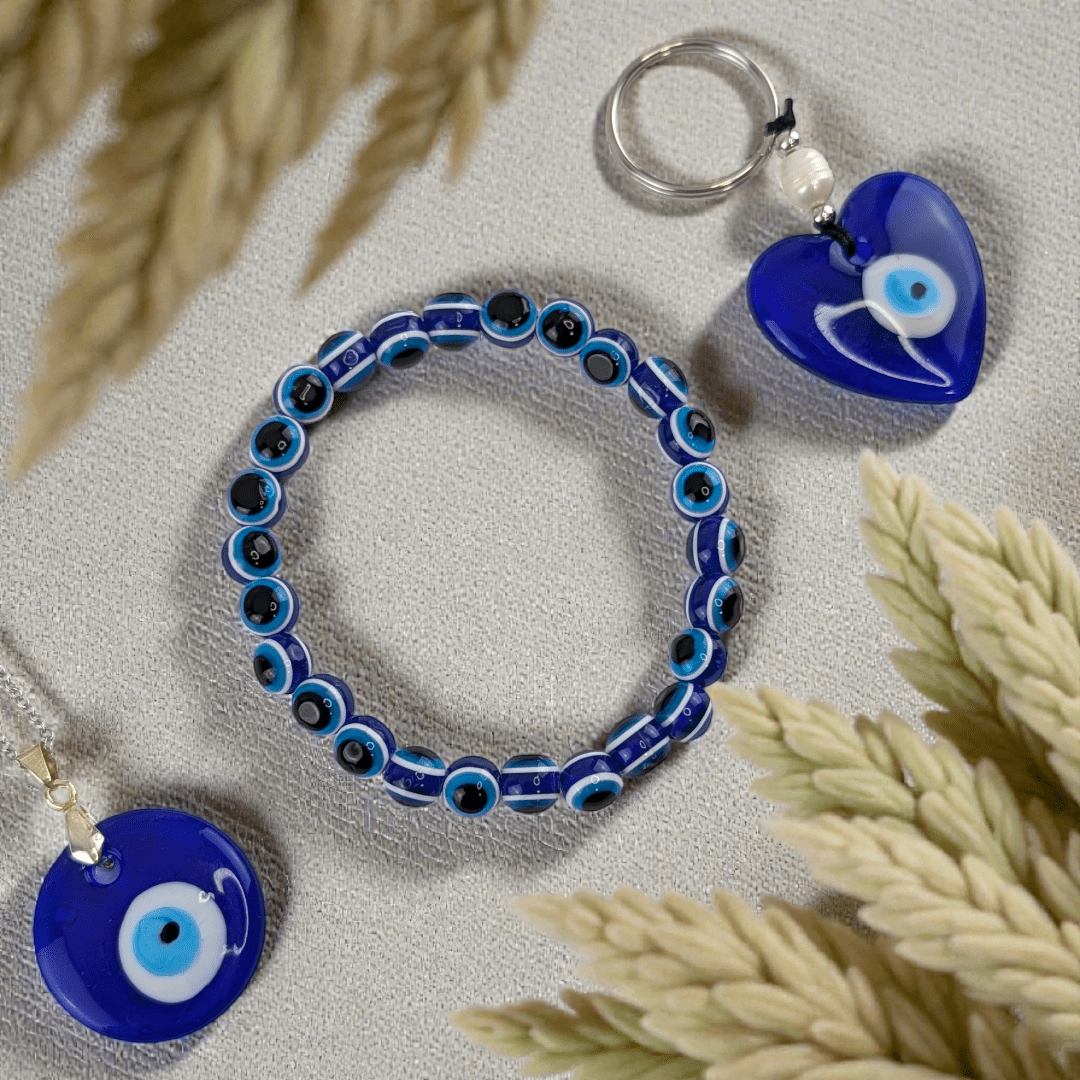 The Evil Eye Jewelry Set is the perfect protection trio for anyone who wants to keep negative energy, jealousy, and unwanted intentions far away from their space. This set combines three powerful protective pieces—a stainless-steel necklace, a durable bracelet, and a resin keychain—designed to offer calm, confidence, and energetic defense throughout your day.