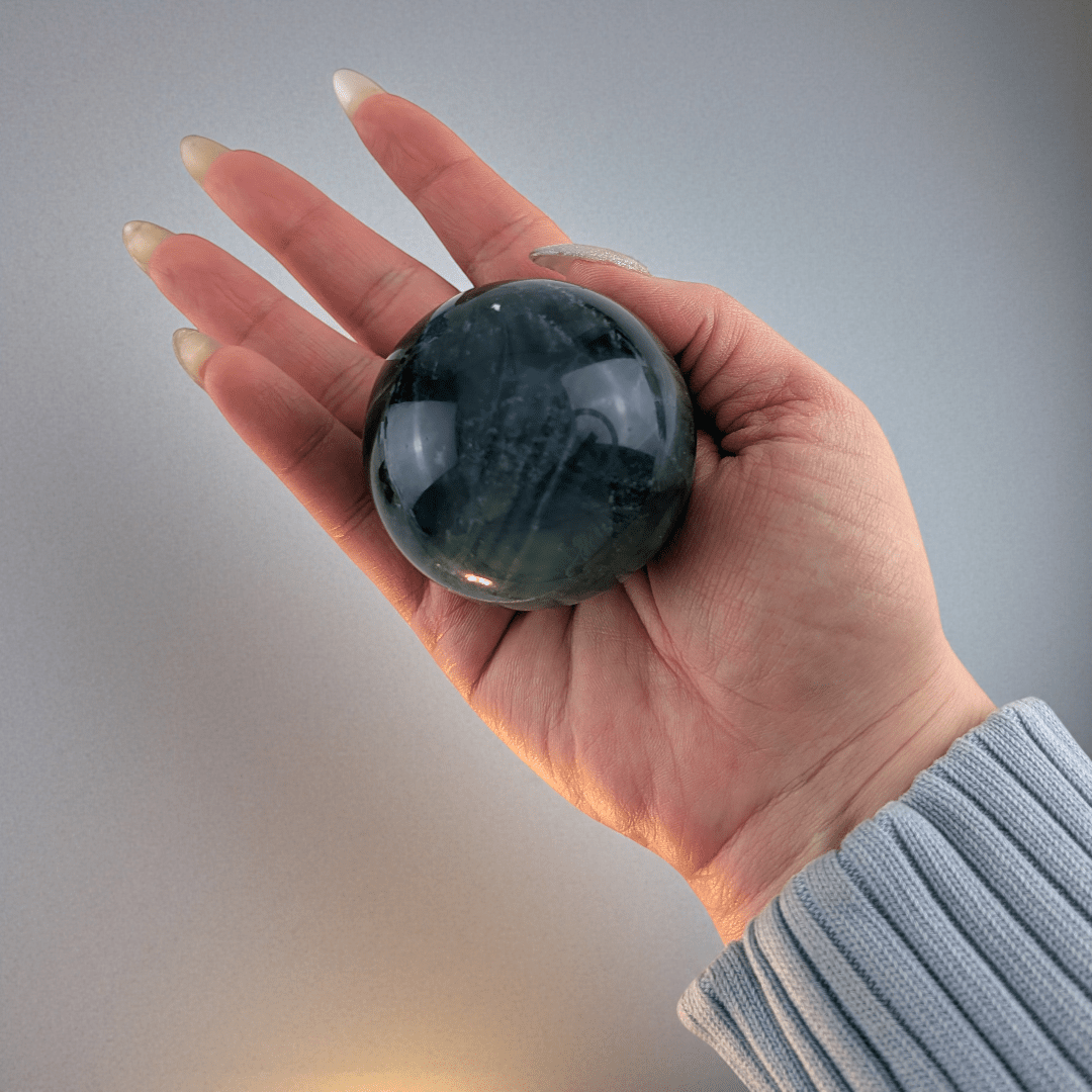 Fluorite is commonly chosen by those who feel mentally scattered, emotionally overloaded, or drained from absorbing too much external energy. The sphere shape allows the stone’s energy to move evenly in all directions, creating a stabilizing presence that helps calm mental noise and bring a sense of order back into your space.
