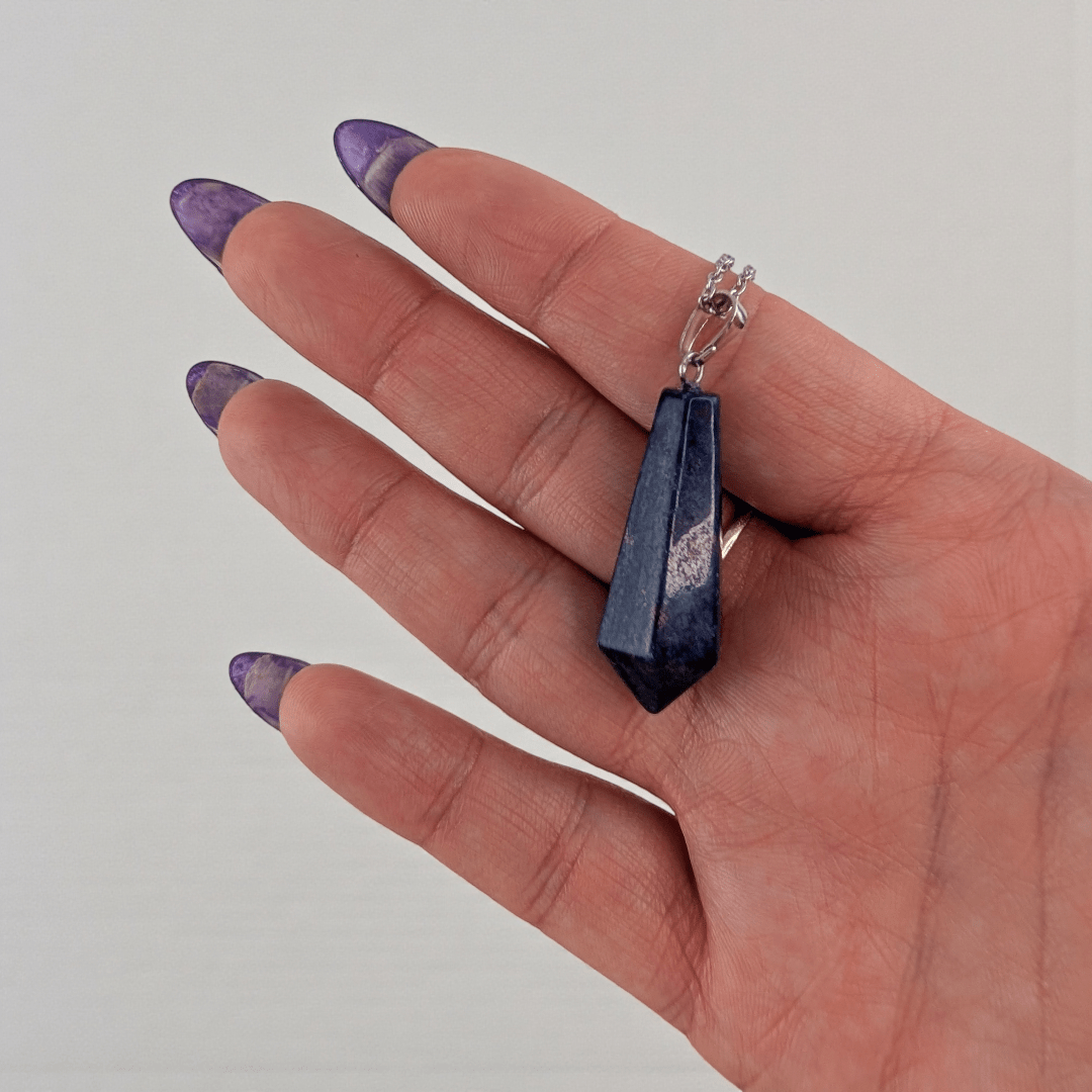 You will receive one intuitively chosen pendant. Natural gold flecks, patterning, and color variation are normal in genuine lapis lazuli. Screen settings may slightly alter perceived shade.