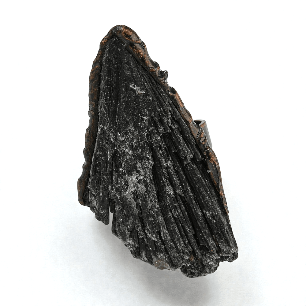 The Raw Black Tourmaline Crystal Blade Ring is a bold, grounding statement piece designed to support protection, boundary-setting, and energetic stability. This ring is often chosen by those who feel overwhelmed by outside energy, emotionally drained, or in need of stronger personal grounding.