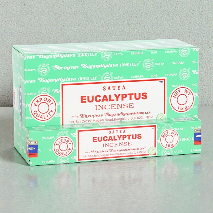 Satya Eucalyptus Incense is known for its crisp, refreshing aroma that helps clear the mind, open the senses, and refresh stagnant energy. The scent is cool, clean, and invigorating, making it ideal for moments when you need mental clarity, focus, or a reset in your space.